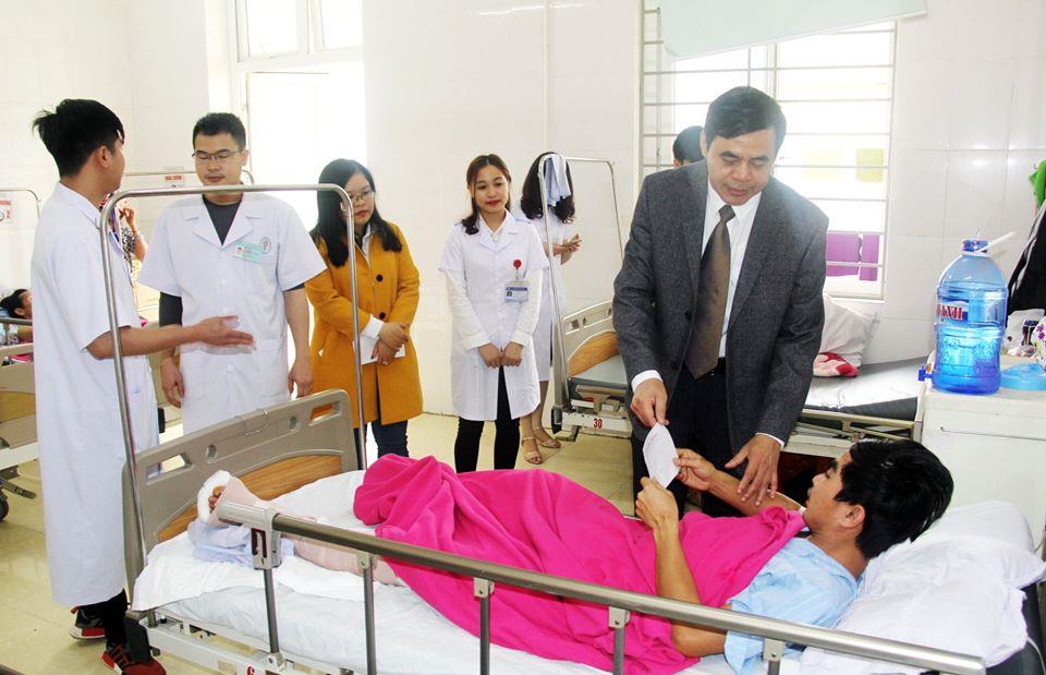 Sáng ngày 05/2/2019 (mồng một tết Kỷ Hợi), Đại diện Ban lãnh đạo, Công đoàn bệnh viện, đồng chí Thạc sỹ,Bác sỹ Lê Văn Hữu - Phó giám đốc- Chủ tịch Công đoàn bệnh viện cùng các Y, Bác sỹ Bệnh viện Chấn thương chỉnh hình Nghệ An đã đến động viên, thăm hỏi, tặng quà và chúc tết tất cả những bệnh nhân đang nằm điều trị tại bệnh viện trong dịp tết.