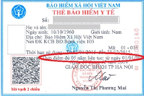 - Trên thẻ BHYT có dòng chữ “Thời điểm đủ 05 năm liên tục: từ dd/mm/yy”